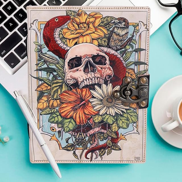 OVERDOSE SKULL Overdose DECKLEジャーナルは、ユニークなデザインと手作りです。 女の子、女性、男の子、男性に最適なスケッチブック、お絵かきパッド、日記帳になります。 トラベルジャーナル、レシピブック、学校のメモなどにお使いいただけます。このノートは間違った使い方はありません。 想像力を駆使して、好きなものを書き留めましょう。 持ち運びが簡単。6インチ x 8インチの本物のサイズの日記帳。持ち運びが簡単です。 レトロ調のレザーノートは、ほとんどのハンドバッグ、バックパック、トートバッグにフィットします。 ストラップは閉じた状態を保ちます。 作家や旅行者に最適です。 職人によって完全に手作りされています。レザー綴じのジャーナルはそれぞれ芸術作品です。 厚みのある高級バフレザーと信じられないほどの職人技を組み合わせて、素晴らしく強烈なレザーの香りで手に柔らかくしなやかな日記帳を作りました。 当社のDeckleレザージャーナルはヴィンテージスタイルで準備されており、使い込むにつれて独自のダメージを受けます。